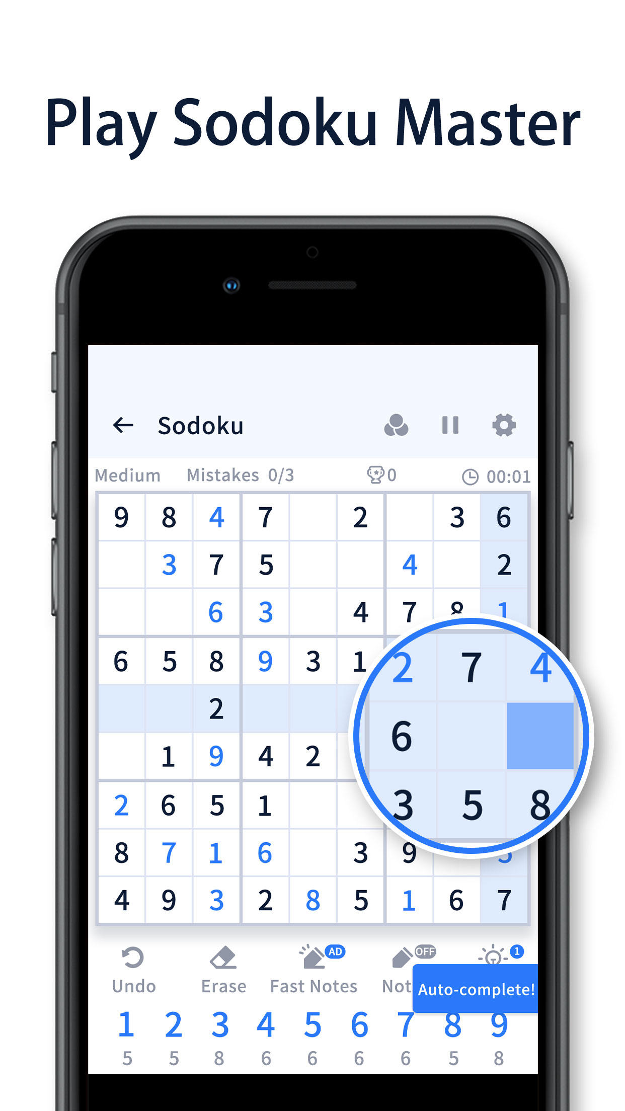 -- Auto-Check. Challenge yourself in finding out the mistakes to challenge your number logic thinking or enable automatic checking to check your mistakes at any time.