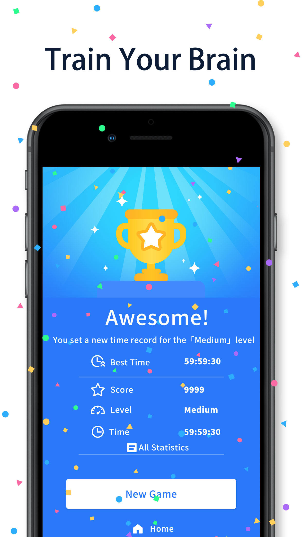 Statistics: Track your progress for each difficulty level of the Sudoku puzzle, analyze your best time and other achievements