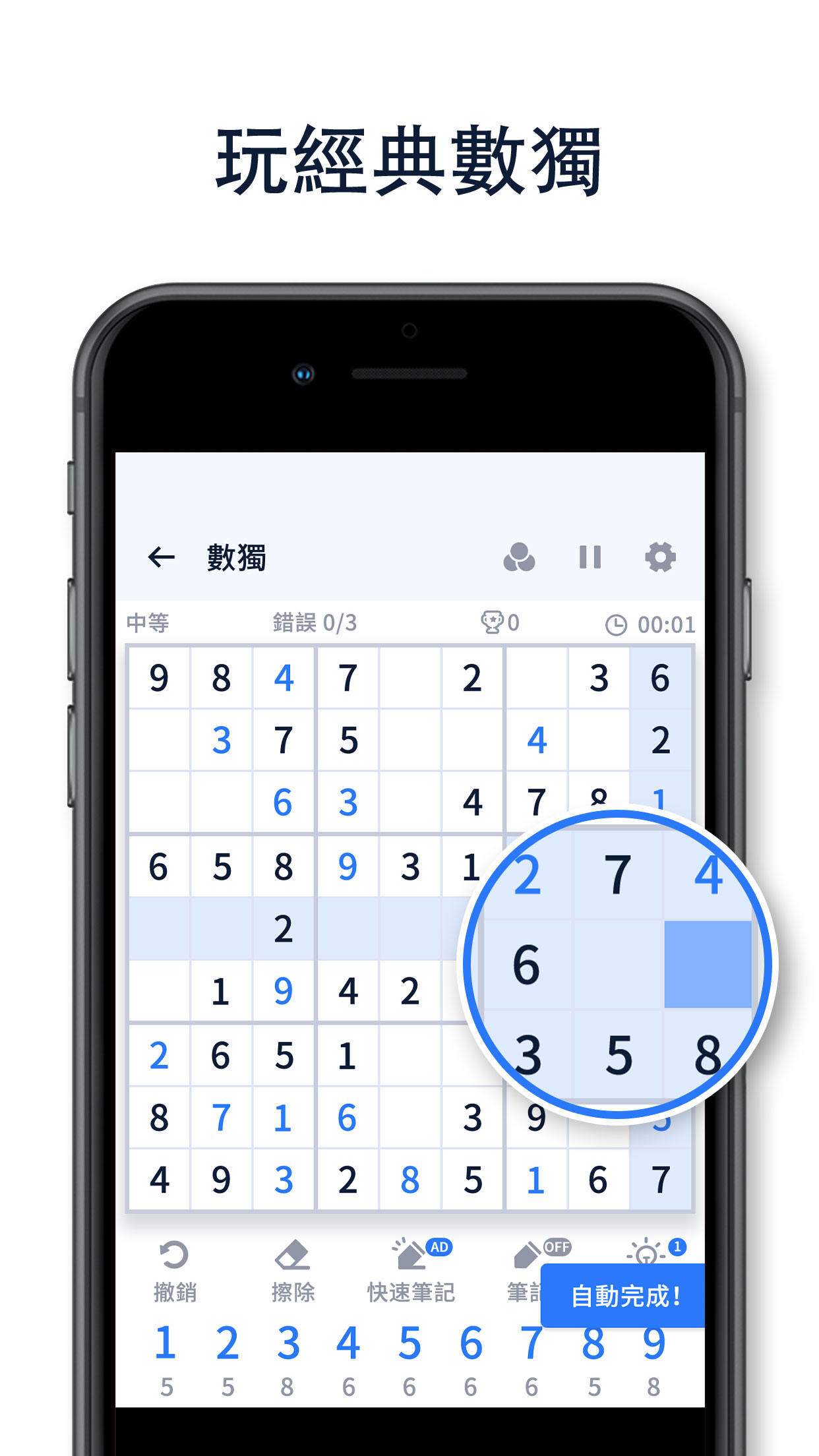 訓練大腦,解答數獨謎題。隨時隨地,想玩就玩,每日暢玩燒腦的經典數字益智數獨遊戲。